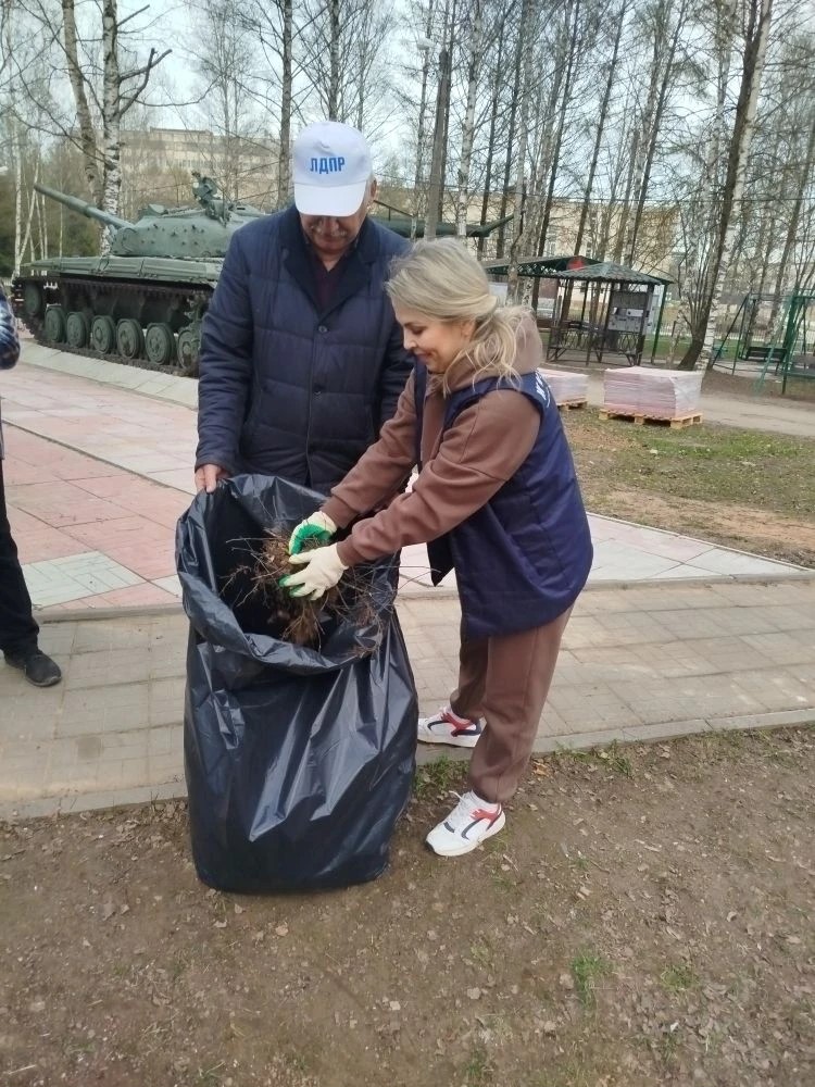 Заместитель руководителя ЛДПР в Ярославской области Анастасия Бажанова, депутат Переславского округа Илья Павлин, партийцы Александр Казинец и Светлана Самойлова вместе с молодёжным крылом партии вооружились инвентарём: граблями, лопатами, мешками - и дружно взялись за дело.